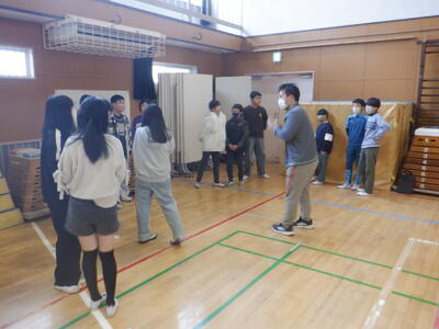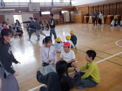 一方、体育館のステージ上にも6-1の「遊んで思い出作り隊」の子たちがいます。