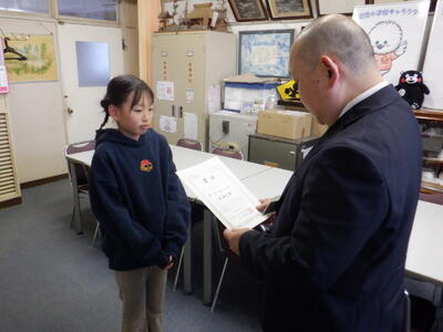 最初は、自転車競技で活躍した児童の表彰です。