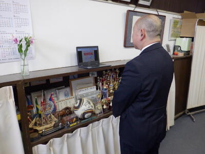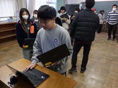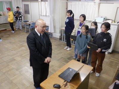 今朝は、リモートで1月の全校朝会が行われました。
