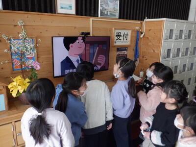 各学級や、東昇降口の「潤徳小デジタルサイネード」では各委員会が作成した紹介動画が流され、「クイズ集会」に向け視聴されていました。