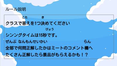 そして、今朝、今までの「勉強」の成果が試される、「第2回ウリサク祭り」クイズ集会がオンラインで行われました。