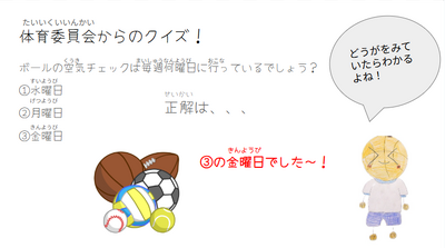 明日は、「第2回ウリサク祭り」クイズ集会が予定されています。