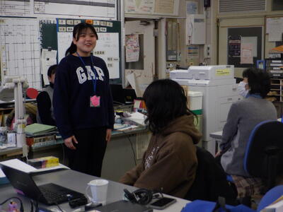 校長「3年前から、学校インターンシップや学力向上支援者として、お世話になった大学生の先生が今日で最後の活動日となったので、挨拶をいただきたいと思います。」