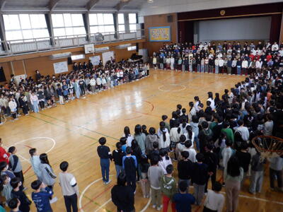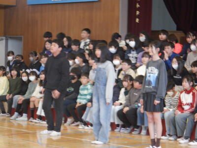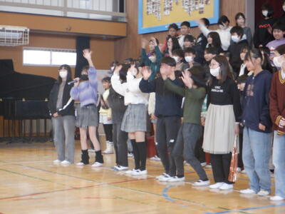 全校、大きな拍手ですが、ちょっとしんみりです。