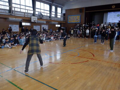 今年度の成果発表会として、中休みの時間にダンスクラブが体育館で発表会を行うのです。