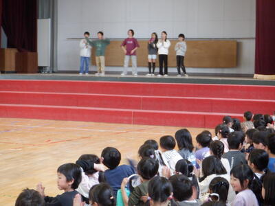 一生懸命演じる1年生に、6年生から「かわいい~!」との歓声が上がります。