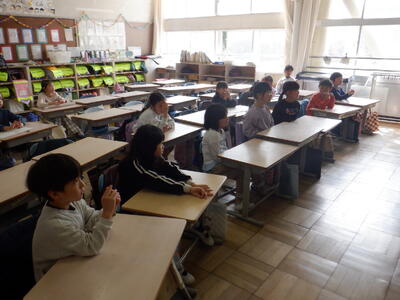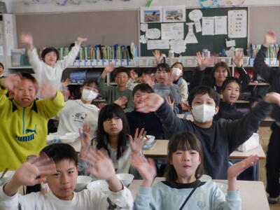 会場の4-1の子たちもお別れの手を振っていました。【校長】