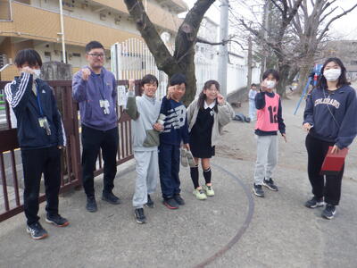 集会委員たち「みなさん、明日は、遅れずに体育館に来てくださいね~!」