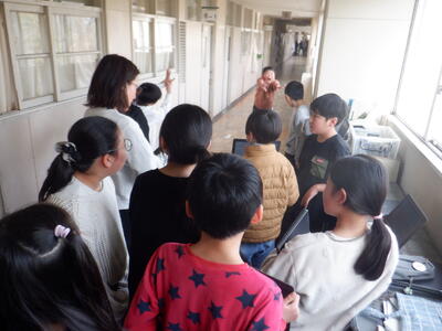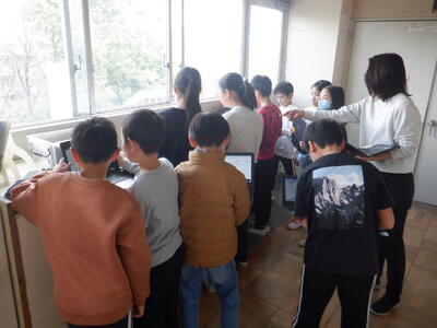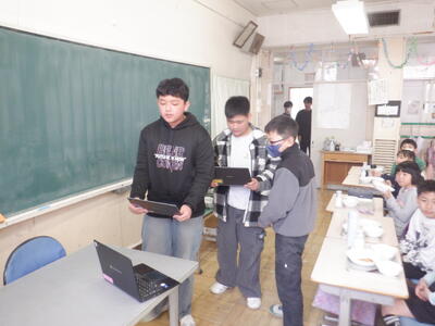 こうしたことが大好きな本校の子たちも積極的に感想を言いにタブレットの前に並びます。
