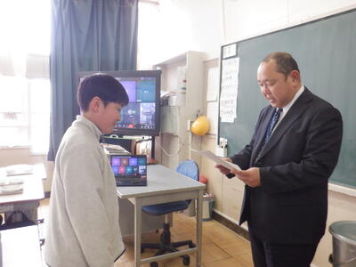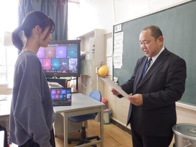 本番同様、校長から一人一人に手渡す練習をします。