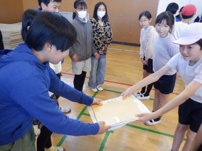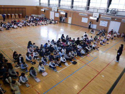 そこで、今日の給食後、5・6年生が体育館に集まり、「たて割り班活動 引継ぎ会」が行われました。