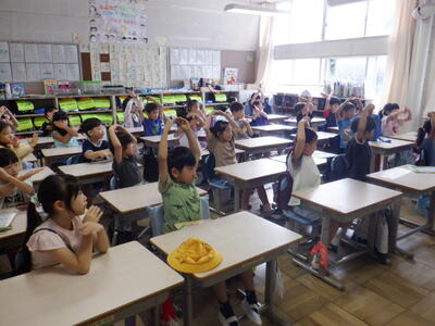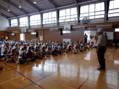 ・副校長先生が「今日はとても暑く・・・」と話していたが、今日は涼しいので「おや?」と思った人もいるかもしれない。今回は、副校長先生の話自体が訓練である。