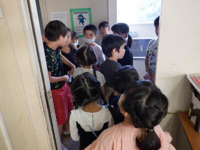 思い思いの場所で休み時間を過ごしていた子たちもその場から避難を始めます。