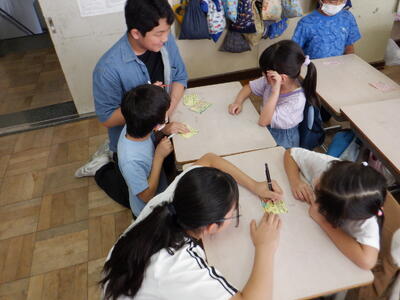 今回は、助手として、今日が活動日の学校インターンシップの大学生も手伝います。