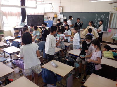 所属学級の5-2でのお別れ会では、子供たちからの寄せ書きが贈られました。