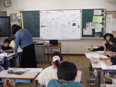 総合的な学習の時間に「福祉」についての体験をしたり、調べ活動を行ってりして、「みんなの幸せ」について考えている4年生たち。