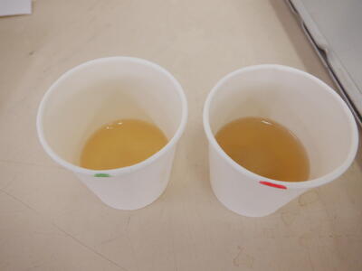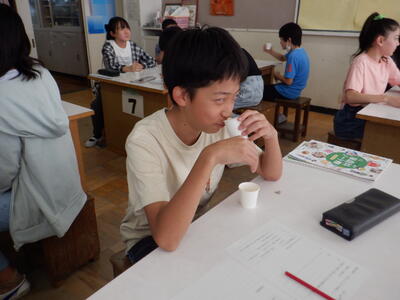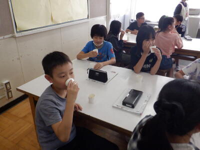 子供たちが飲んだ感想を発表した後、答え合わせです。