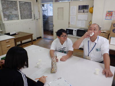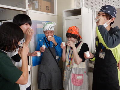授業を参観していた担任等の教員やインターンシップ生も試飲です。