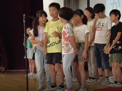 4年生運動会実行委員「私たち4年生は『エイサー』を踊ります。『エイサー』は沖縄の伝統の踊りです。『元気いっぱい、力を合わせてエイエイサー!』をスローガンに頑張っています。キレッキレにカッコよく踊るので、ぜひ、見てください。」