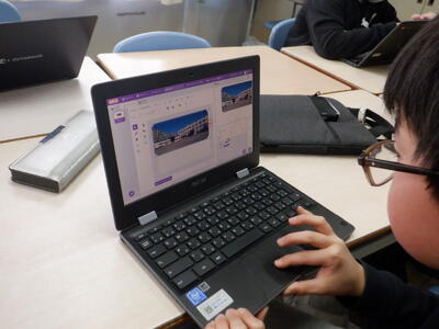 潤徳小の写真を貼り付けている子がいたので、何に使うのか聞いてみると、タイトル画面に使用するとのことでした。