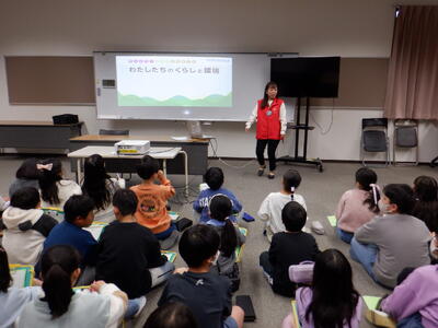 今日の6時間目、市の環境政策課の職員の方々においでいただき、SDGsについてのお話を伺いました。