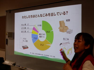 子供たちに家庭ごみの内訳を表したグラフが提示されます。