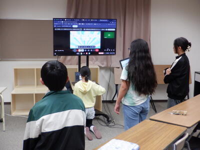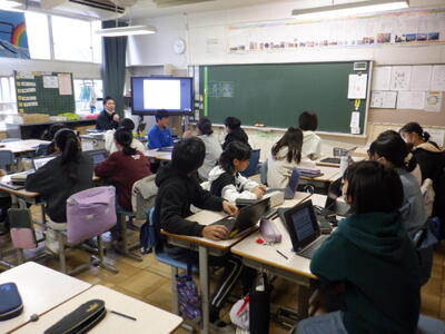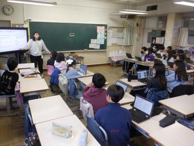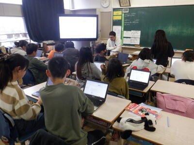一方、5年生は、6年生になったら下級生を引っ張っていかなければならない立場ですから、真剣に先輩の6年生の作成したスライドを見ています。