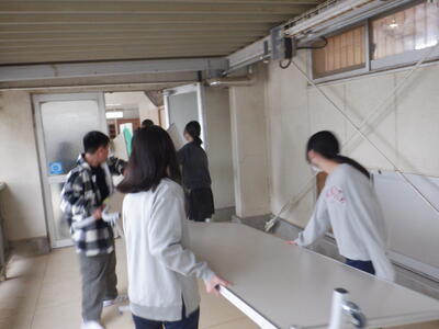 そして、たくさんのパネルを体育館に運び込む児童会本部役員の子供たち。
