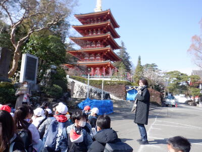 1月に「下見」として高幡不動尊の見学(詳しくは、こちら)をした3年生。