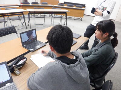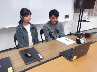 オンラインといっても、緊張感いっぱいの本校の委員長、副委員長です。
