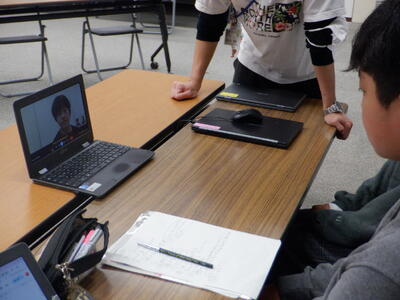 それに先立ち、今日の昼休み、「潤八なかよし大作戦」を進める本校と八小との間でもオンラインによる「首脳会談」が行われました。