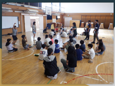 自分の学年のことは分かっていても、他の学年がどんな演技をするのか知らない子も多いため、それぞれの学年の練習の様子を興味深そうに眺めている子供たちです。