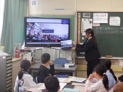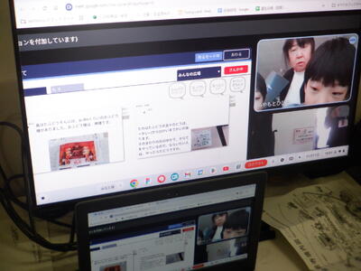 本校からの質問にも答えてもらうなど、互いに積極的な交流が行われました。(八小から見た交流の様子は、こちら)