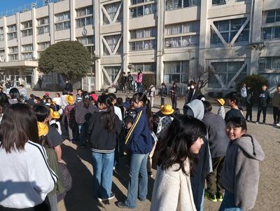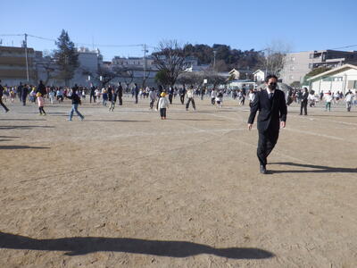 集会委員A「今年度最後の児童集会は『逃歩中』です。これは、私たちが校長先生に直接”抗議”してできるようになった集会です。」