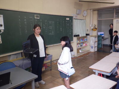 授業ですから、本校の日直の児童が代表して号令をかけます。