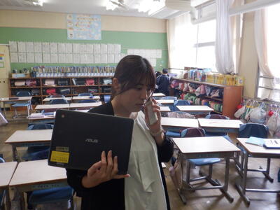 なかなか、画面が映らない班もあり、こうした時は、担任同士が電話で連絡を取り合って状況を確認しています。
