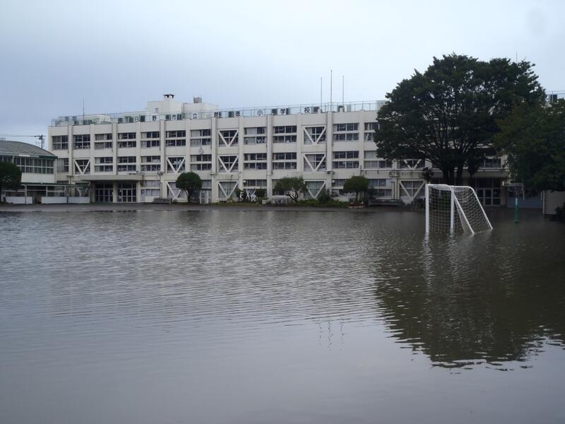 台風による大雨のため、校庭はご覧の通りです。排水ポンプは正常に稼働しており、明日には水が引くと思われます。