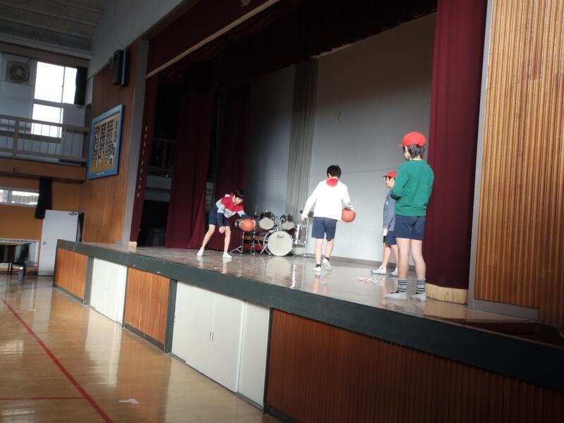 朝の児童集会で行いました。音楽、ダンス、バスケットボールの各クラブが、