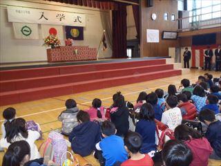 6年生はクイズで学校のルールを教え、5年生は1年生と一緒に入場し、