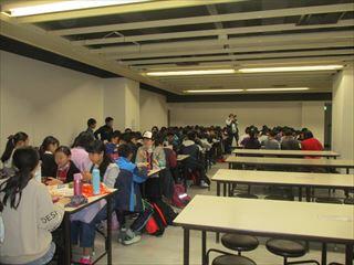 クラスごとにバスで移動し、窓から見える都会の景色にワクワクしている様子でした。