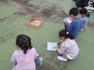 2年生は、雨でできなかったグループが、トマトの苗を植えていました。教室では観察を行いカードを書いていました。