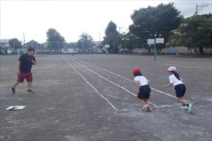 校庭体育は、学習発表会~運動の部~に向けて50m走を走っていました。赤白分けの参考にします。(2年1・3組)