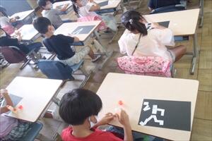 1年生図工「紙人間を作ろう」です。これは体がどこで曲がるのか分かっていないとできないですね。なかなか上手です。(4組)