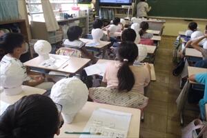 今週から、三密を避けるために、音楽で扱うリコーダーや鍵盤ハーモニカ等の管楽器の演奏は、体育館で行うことにしました。5年3組の授業の様子です。なんと7か月ぶりのリコーダーで、指使いを忘れている児童もいたようです。でもなかなか良い音を出せていたように感じました。