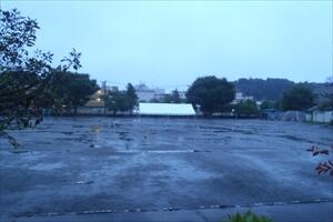 今日は台風による臨時休校でした。職員は、26日の「学習発表会~体育の部~」に向けて、準備できるものはやっておこうと、ロープ張りやテント設営など、校庭の準備を行いました。