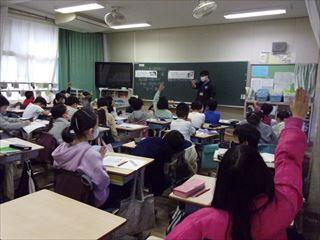今日は4年1組と2組を対象に、学校歯科医 武内義晴先生が歯みがき指導をしてくださいました。