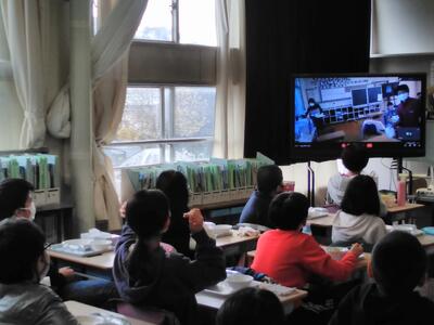 その後は、給食中の各学級を回ってくださって、山都・潤徳小の児童や先生方が、カメラに向かって話しかけてくれました。