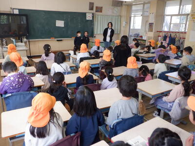 修了式の後、生活指導部の先生から「春休みの過ごし方」について、情報主任の先生から「Chromebookの使い方」についてお話がありました。