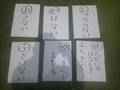 校長からは、「校長先生との3つの約束」をしっかり守ることが「史上最高のや・つ・が・た・け」のめあてにつながると話しました。