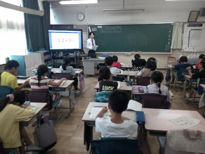 2時間目に3年1組で行われた研究授業は、算数の「大きい数のかけ算のしかたを考えよう」です。